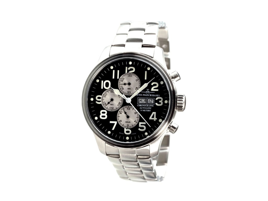 Mechanický, vysoce kvalitní švýcarský stroj ETA Valjoux 7750, uložen v 25 rubínových kamenech, s maximální 42 hodinovou rezervou. Kontrastní číselník s luminiscenčními číslovkami na černém podkladu spolu s nostalgickými, snadno čitelnými ručičkami, tvoří velice přehledný ukazatel času. Nastavení hodinek je možné i v rukavicích, neboť uchopení korunky je extrémně snadné a rychlé. Švýcarský křížový znak na korunce dodává tomuto chronografu charakter klasických pilotních hodinek z roku 1980. Pouzdro průměru 47,5 mm je vyrobené z odolné nerezové vysoce leštěné oceli. Na každém detailu se odráží nadšení, které věnoval Felix W. Huber výrobě tohoto výjimečného mistrovského díla ZENO-WATCH BASEL