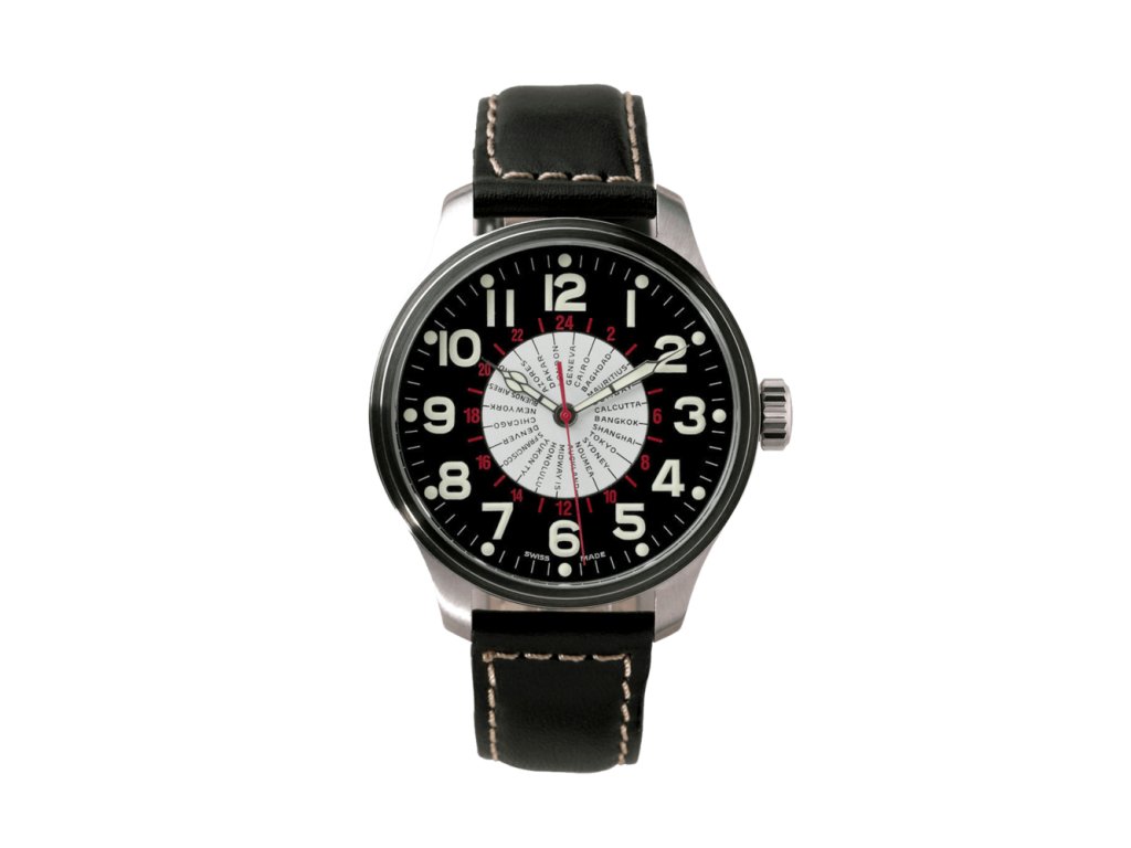 Mechanický, vysoce kvalitní švýcarský stroj ETA 2893–3, uložený v 24 rubínových kamenech. Možnost nastavení druhého světového času z 24 oblastí. Kontrastní číselník s luminiscenčními číslovkami na černém podkladu spolu s nostalgickými, snadno čitelnými ručičkami, tvoří velice přehledný ukazatel času. Švýcarský křížový znak na korunce dodává tomuto modelu charakter klasických pilotních hodinek z roku 1980. Pouzdro průměru 47,5 mm je vyrobené z odolné nerezové vysoce leštěné oceli. Na každém detailu se odráží nadšení, které věnoval Felix W. Huber výrobě tohoto výjimečného mistrovského díla ZENO-WATCH BASEL.