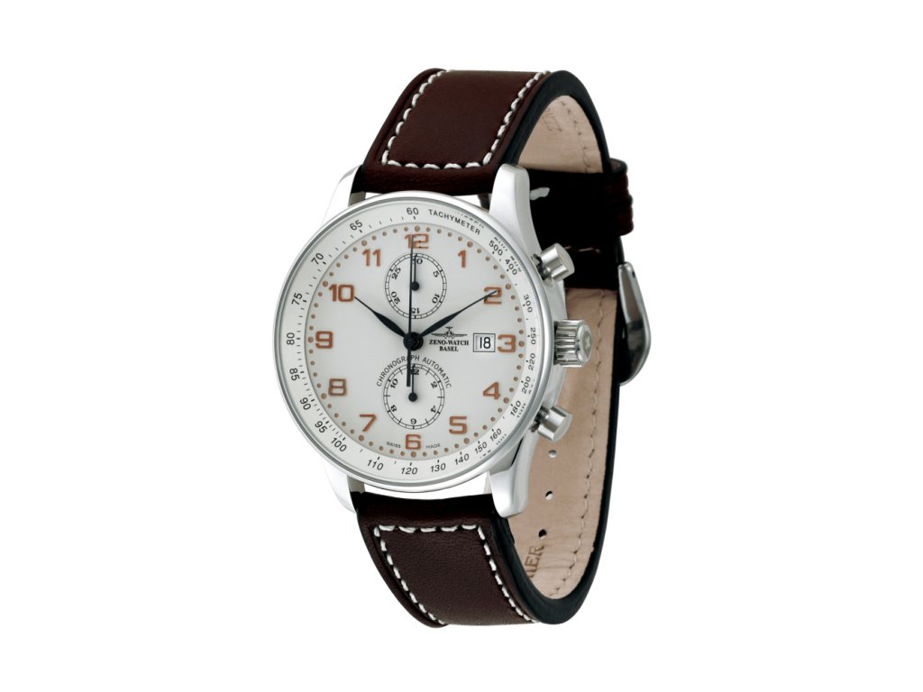 Mechanický, vysoce kvalitní švýcarský stroj Valjoux 7750, uložen v 25 rubínových kamenech, s maximální 42 hodinovou rezervou chodu. Kontrastní číselník s měděnými číslicemi na světlém podkladu, spolu se snadno čitelnými ručičkami, tvoří velice přehledný ukazatel času. Nastavení hodinek je možné i v rukavicích, neboť uchopení korunky je extrémně snadné a rychlé. Švýcarský křížový znak na korunce dodává tomuto chronografu charakter klasických pilotních hodinek z roku 1980. Pouzdro o průměru 44mm je vyrobené z odolné nerezové vysoce leštěné oceli. Na každém detailu se odráží nadšení, které věnoval Felix W. Huber výrobě tohoto výjimečného mistrovského díla ZENO-WATCH BASEL.