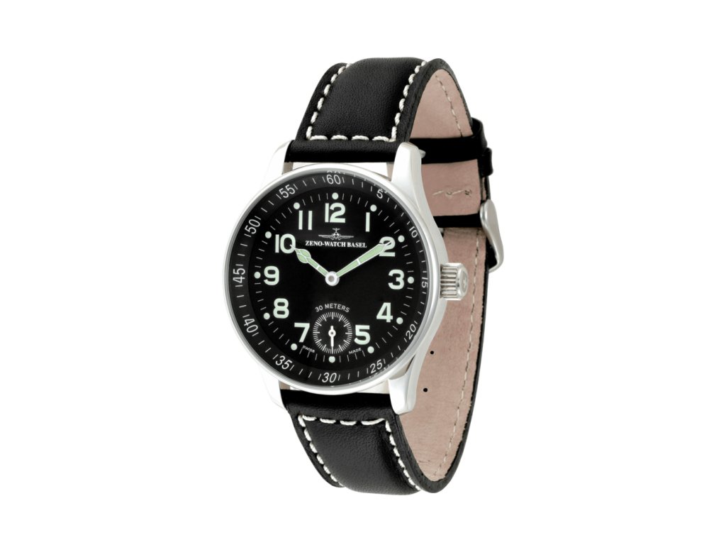 Mechanický, vysoce kvalitní švýcarský stroj ETA Unitas 6498/2 s ručním nátahem, uložený v 17 rubínových kamenech, s maximální rezervou chodu 48–55 hodin. Kontrastní číselník s luminiscenčními číslovkami na černém podkladu spolu s nostalgickými, snadno čitelnými ručičkami, tvoří velice přehledný ukazatel času. Švýcarský křížový znak na korunce dodává tomuto modelu charakter klasických pilotních hodinek z roku 1980. Pouzdro průměru 44mm je vyrobené z odolné nerezové vysoce leštěné oceli. Na každém detailu se odráží nadšení, které věnoval Felix W. Huber výrobě tohoto výjimečného mistrovského díla ZENO-WATCH BASEL.